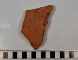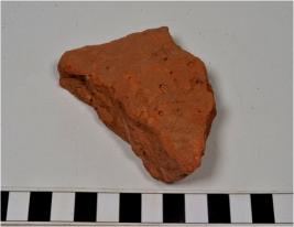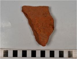| Description / विवरण | A fragment of a terracotta tile of rough surface and coarse fabric. |