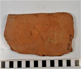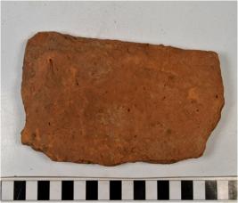 | Description / विवरण | A fragment of a terracotta tile of Red Ware of coarse fabric. |