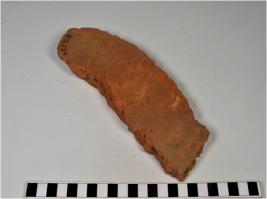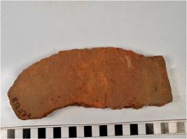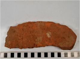 | Description / विवरण | A fragment of a terracotta tile of Red Ware of coarse fabric. |
