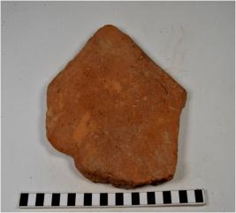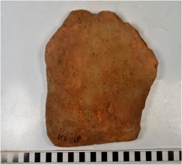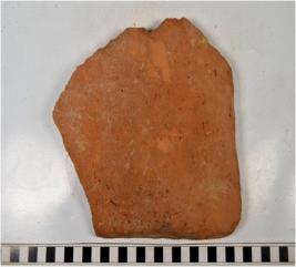 | Description / विवरण | A fragment of a terracotta tile of Red Ware of coarse fabric. |