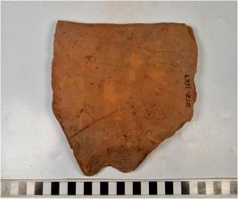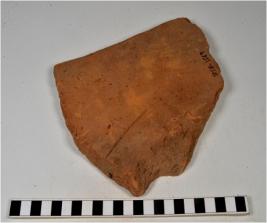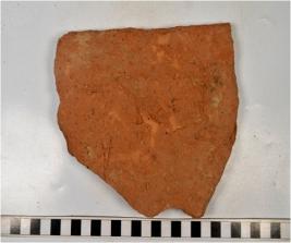 | Description / विवरण | A fragment of a terracotta tile of Red Ware of coarse fabric. |