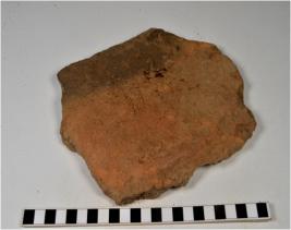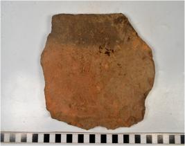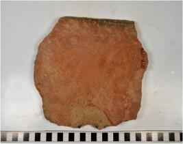 | Description / विवरण | A fragment of a terracotta tile of Red Ware of coarse fabric. |