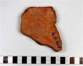 | Description / विवरण | A fragment of a terracotta tile of Red Ware of coarse fabric. |