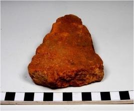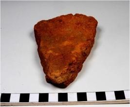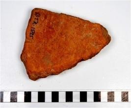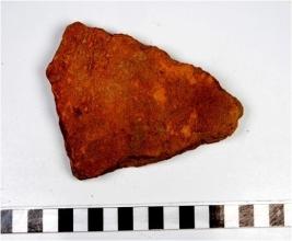 | Description / विवरण | A fragment of a terracotta tile of Red Ware of coarse fabric. |