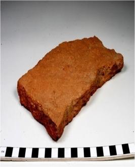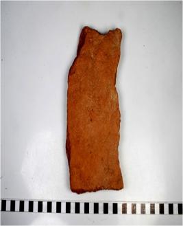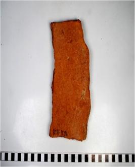 | Description / विवरण | A fragment of a terracotta tile of Red Ware of coarse fabric. |