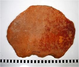 | Description / विवरण | A fragment of a terracotta tile of Red Ware of coarse fabric smooth surface. |