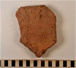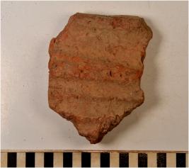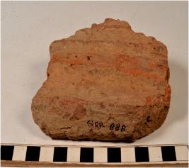 | Description / विवरण | A fragment of a terracotta tile of coarse fabric having corrugated profile rough surface. |