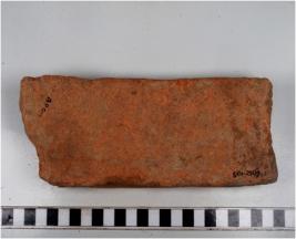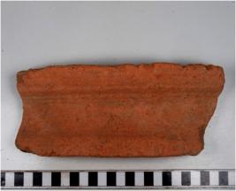 | Description / विवरण | A fragment of a terracotta drain type object having depression in the centre and raised rim on the both edges of thick fabric sturdy texture rough surface. |