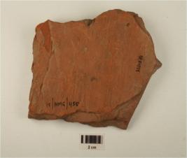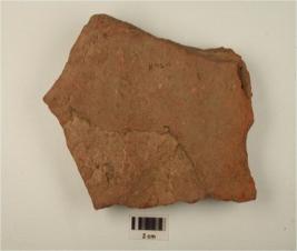 | Description / विवरण | Fragment of a hand made terracotta tile, has reed impression on one side. |