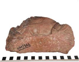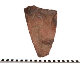 | Description / विवरण | A fragment of a stone cross bar Suchi showing flying horse in circle and decorative outer surface. |