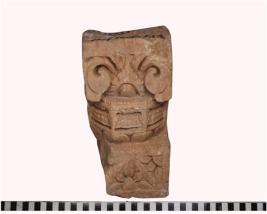 | Description / विवरण | A structural fragment of pillar square in shape showing foliage decorative carving on it surface. |