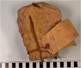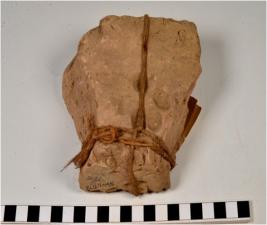 | Description / विवरण | A fragment of a mud brick having foot print of coarse fabric. |