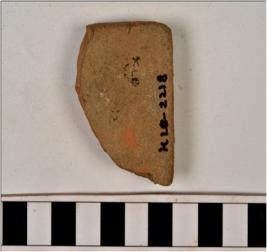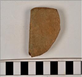 | Description / विवरण | A fragment of a terracotta brick, of smooth surface and square in shape. |