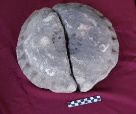 | Description / विवरण | Amlaka stone circular in shape, treated like vertical stripes of emblic Amla fruit all around. Top part of the object is flat. |