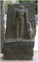 | Description / विवरण | A sculpture probably depicting a scene of self immolation by a male figure who is standing erect without head. The head, possibly tied to the left hand of the figure stands for the one that is offered by the man. |