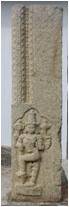 | Description / विवरण | A door jomb depicting a standing four armed Vaishnava Dwarapalaka. |