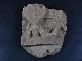 It s a piece of pillar made of stone, Colour is brownish. It is well decorated and design is clearly visible. It s all sides are broken. Deposition of dust and dirt. Rubbing on the surface and flaking on it.