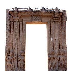 | Description / विवरण | Door jamb having two verticals and one lintel. Lintel depicted with Gajalakshmi motif where as the two verticals are depicted with dwarapalas and fluted and floral design. |