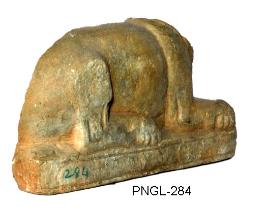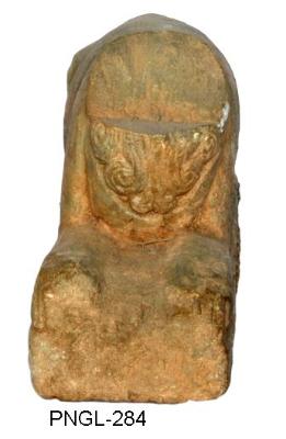 | Description / विवरण | Seated vyala lion with folded legs. Broken head. It shows flowing mane just like foliage below the neck. The toe fingers of fore legs on the left side are seen clearly. |