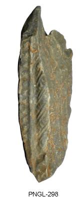 | Description / विवरण | Broken piece of a ornamental pillar showing a spiral and a beaded designs inbetween two lines. |