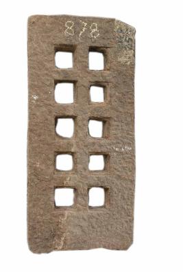 | Description / विवरण | Perforated lattice designed window with square holes in two rows, five in each row. |
