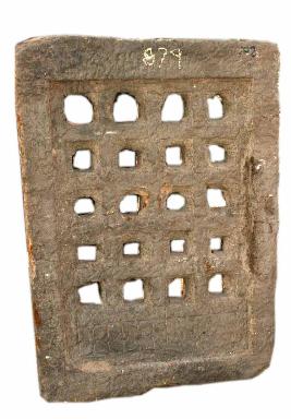 | Description / विवरण | Perforated lattice designed window with square holes in five in each row in four rows. |