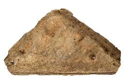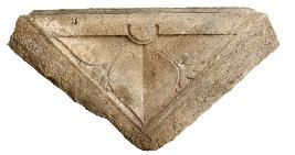 | Description / विवरण | Triangular shaped ceiling slab, which is a part of Kadalikarana motif normally seen in ceiling slabs of garbhagriha antharala. Decorated with leaf like design in the centre. |