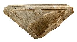 | Description / विवरण | Triangular shaped ceiling slab, which is a part of Kadalikarana motif normally seen in ceiling slabs of garbhagriha antharala. Decorated with leaf like design in the centre. |