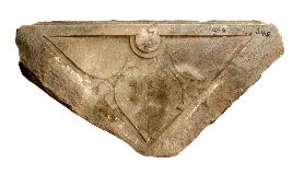 | Description / विवरण | Triangular shaped ceiling slab, which is a part of Kadalikarana motif normally seen in ceiling slabs of garbhagriha antharala. Decorated with leaf like design in the centre. |