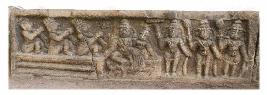 | Description / विवरण | Rama and Laxmana holding bows on their shoulders. Head dressed is bun shape and decorated with beads. Both the hands are in anjali-mudra. The left man shows in folded drapery. The right man is decorated with a long garland. |