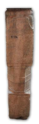 | Description / विवरण | Pillar showing rampant lion with wide open mouth and protruding and hanging tongue. Probably a man is pulling reins from behind the pillar. A baruvahaka figure is shown on the top. Underneath the base are circular mouldings. |