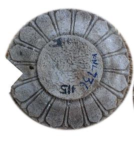 | Description / विवरण | Fragment of ceiling depicted with lotus petals on dorsal and ventral faces. |