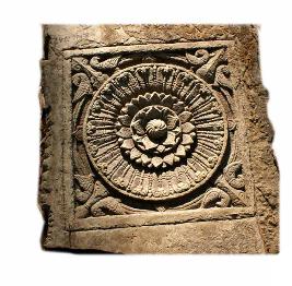 | Description / विवरण | Central ceiling slab depicted with fully blossomed lotus and bud at the centre. Foliage patterns in the corners. |