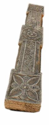 | Description / विवरण | Architectural member of pillar of well decorated with lotus and foliage pattern in the shape of a festoon alternately. In the center is a circular moulding with two inner receding circles and a bud in the center. |
