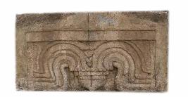 | Description / विवरण | Moulding of a roll corbel emerging from either end of a beam and touching each other in the centre with Pushpapodhika pointing downwards. The roll corbel is in five strands running in curved pattern in the form of a festoon. |