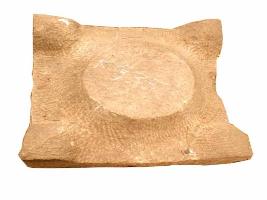 | Description / विवरण | Square Phalaka neatly dressed dorsal and ventral faces. Four flower droppings on four corners and central projected circular part on its ventral face. Dorsal face is plain. |