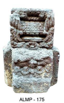 Broken pillar depicted with purnaghata motifs at its base on three sides. Below the base is a pedestal decorated with kirthimukha motifs.