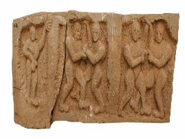 | Description / विवरण | The panel has three registers. The right two panels show scens of wrestling and last one shows a standing man kept his right hand on his private part, on other one is raised. |