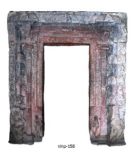 | Description / विवरण | A door jamb consisted of three parts, two verticals and one horizontal. Each vertical is decorated with flutings, floral designs, pilaster motifs, vyla motifs and dancing figures admist floral scrolls. The sakha is depicted with a saivite dwarapalas guarded by hooded snake on one side and female figure standing in tribhanga posture on the other side. The lintel is depicted with floral designs and, chaitya motifs. |