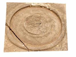 | Description / विवरण | Square phalaka with central projected circular part surrounded by a pair of circular bands on its ventral side. A square projected part on dorsal face. |