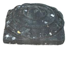 | Description / विवरण | A broken square phalaka of a pillar with flat upper surface and circular under surface. |