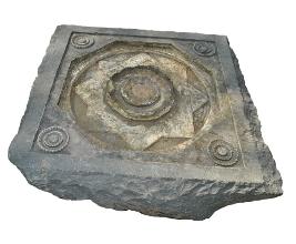 | Description / विवरण | Central ceiling slab of Garbhagriha Antarala Mandapa, decorated with a fully blossomed lotus within a octogaonal niche at the centre |
