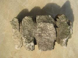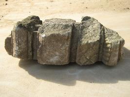 | Description / विवरण | The stone block is carved out in 4 steps. The lower is having conical projection. Next upper is flat, and above it a floral petal like design. The top is bearing the elonged groove marks in linear pattern below the surface. The stone is flake. |