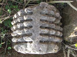 | Description / विवरण | The stone block is thick and heavy. It has many courses of carvings in horizontal from. It has 7 tiers. Three vertical bands join the tiers. |