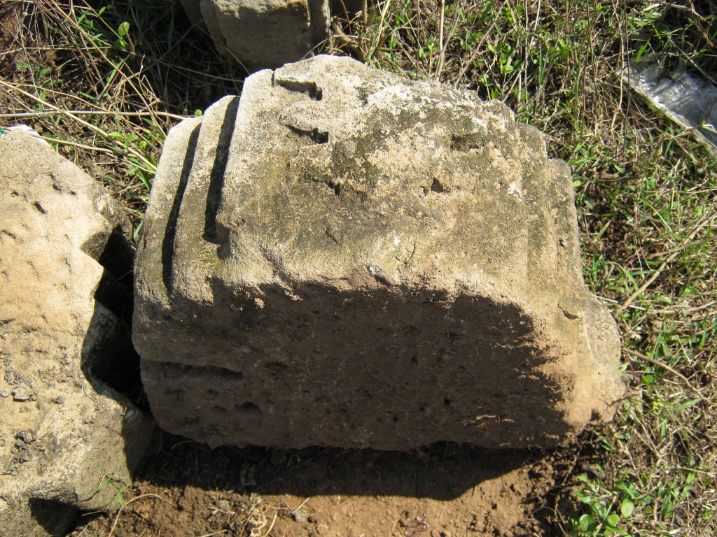 The carving on the stone block is fashioned in vertical maner. One groove mark is visible on the backside used for joints. Front side is carved in paga style of a temple. On the broad facet a pidha mund is carved.