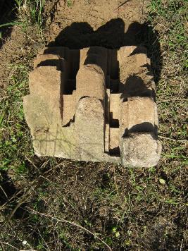 | Description / विवरण | The stone block is carved out with 3 mouldings. Both side mouldings are flat and middle one are rounded. In between the mouldings deep reecsses are visible. One side of the stone is broken along with the mouldings in diagonal manner. |
