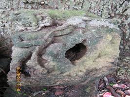 | Description / विवरण | Part of a Bho motif lying under a tree has a Yaksha. On right corner, holding a rope like thing with flaring curly hairs. Ornaments like, necklace and bracelse, are ornately carved. |