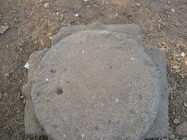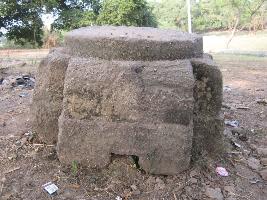 The pillar fragment is available from the abacus postion top porton. It has a circular lower part and 4 wide projected part above it on the same stone. 4 square size groves are visible on the projected sides.