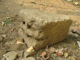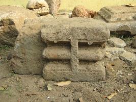The moulded stone prababy part of an earlier temple. It has three tiered projections and all three mouldings are connected by a vertical band.