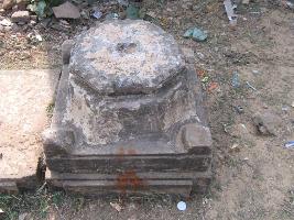 | Description / विवरण | The base of a pillar is made up in two steps like projection.The lower one is square having tankus on four corners.The upper part is tapered with octagonal fashion.One hole is visible on the top. |